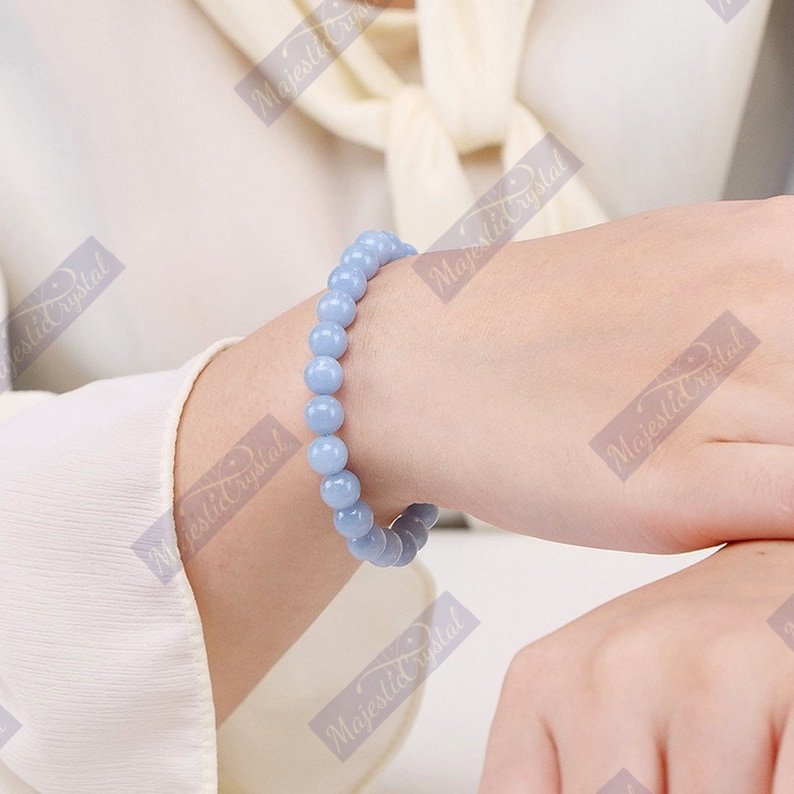 - The old world is left behind when Angelite Bracelet enters your life. It takes you to a completely different world where old worries are not there at all.