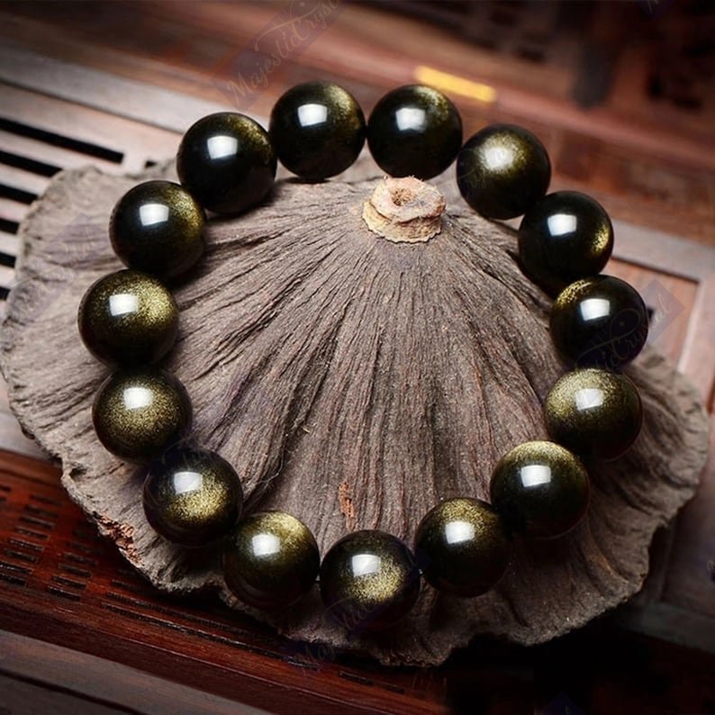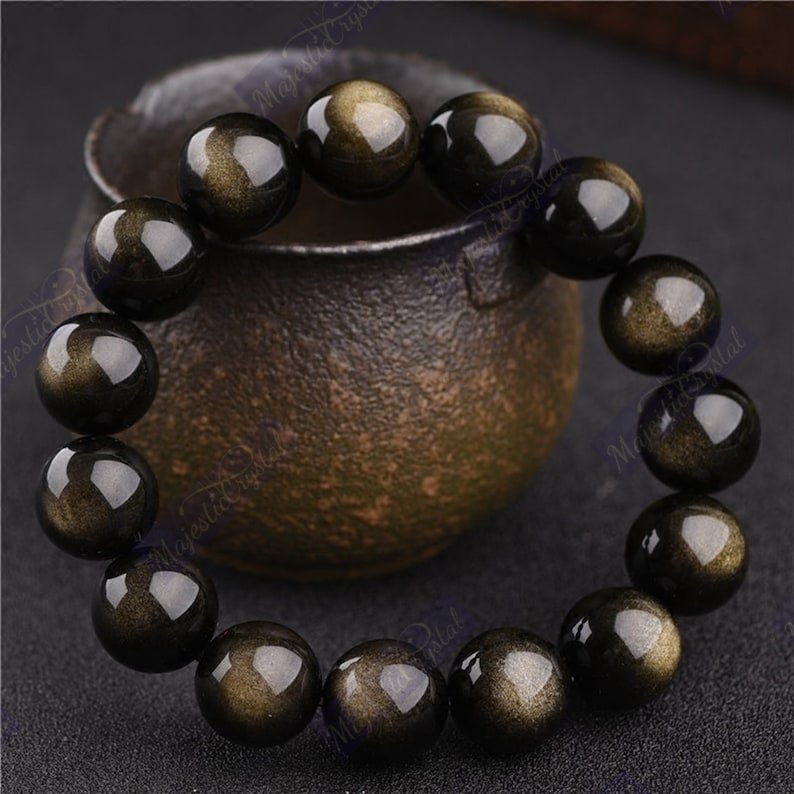 Golden Obsidian is an exquisite and divine bracelet. It is specially used to activate the third eye chakra, so a divine connection can easily be established. When the third eye chakra is activated, there is nothing that you cannot manifest. It opens up inhibitions and allows you to reveal your innate abilities to the world. Golden obsidian is the most positive stone around which negativity cannot revolve.