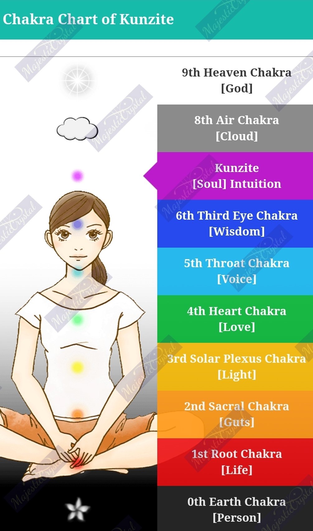 • It also activates the crown chakra which opens communication with the light violet energy of the mind.
