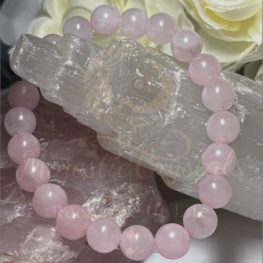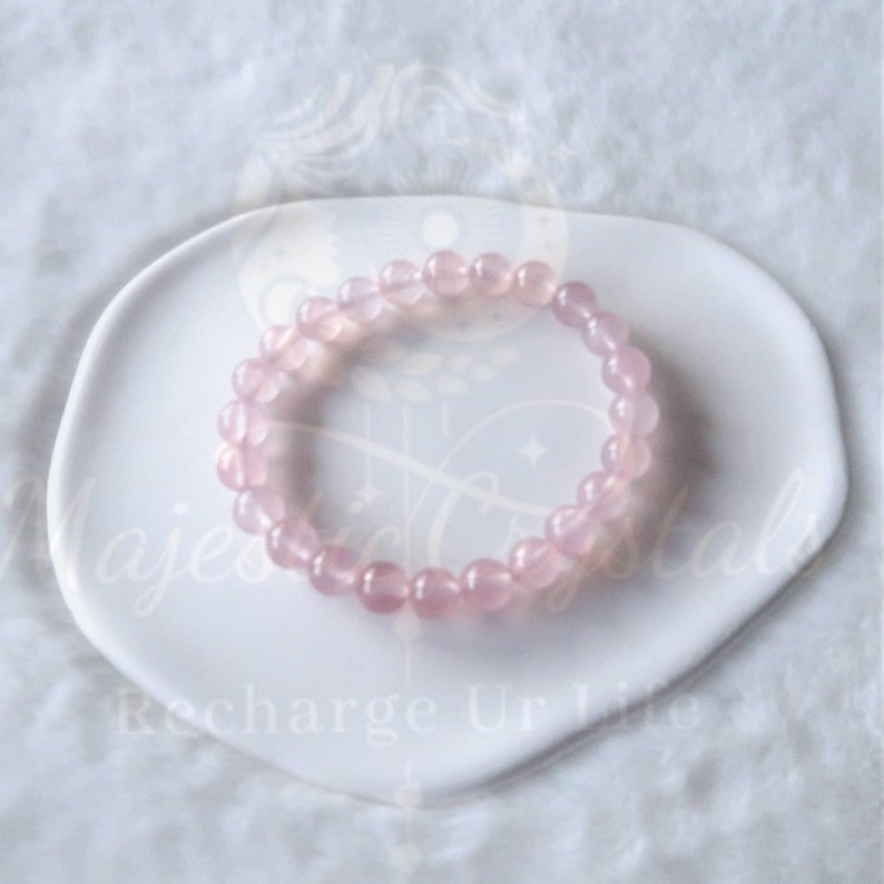 Rose Quartz Bracelet gives ideal body shape, enhances beauty & charm, improves aesthetic sense & tastes, opens heart for love, helps get proposals, treats private diseases, improves sex life, removes poverty, attracts people, develops self-love, and makes highly creative & artistic.